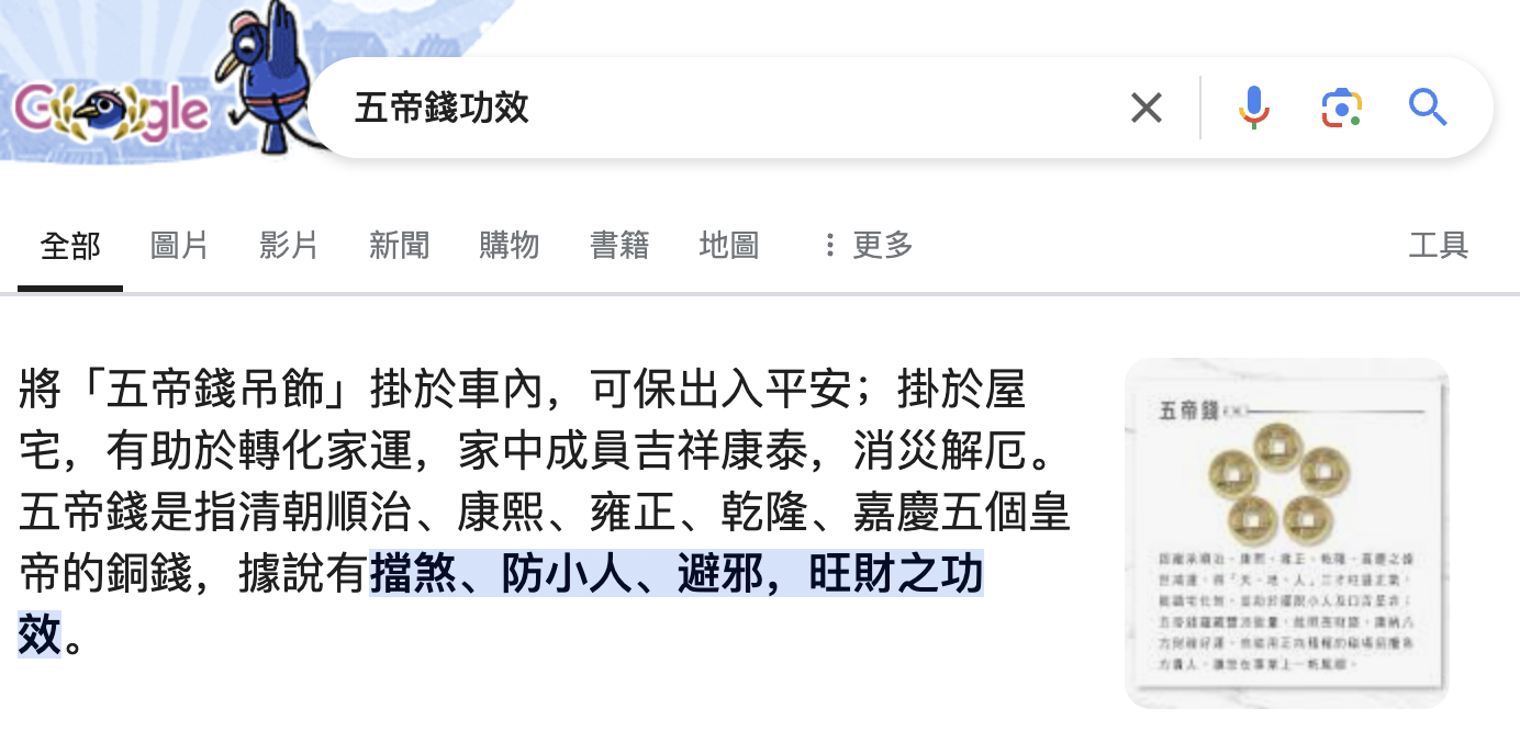 3、五帝錢安神明爐內;可辟邪兼旺家運、財運。